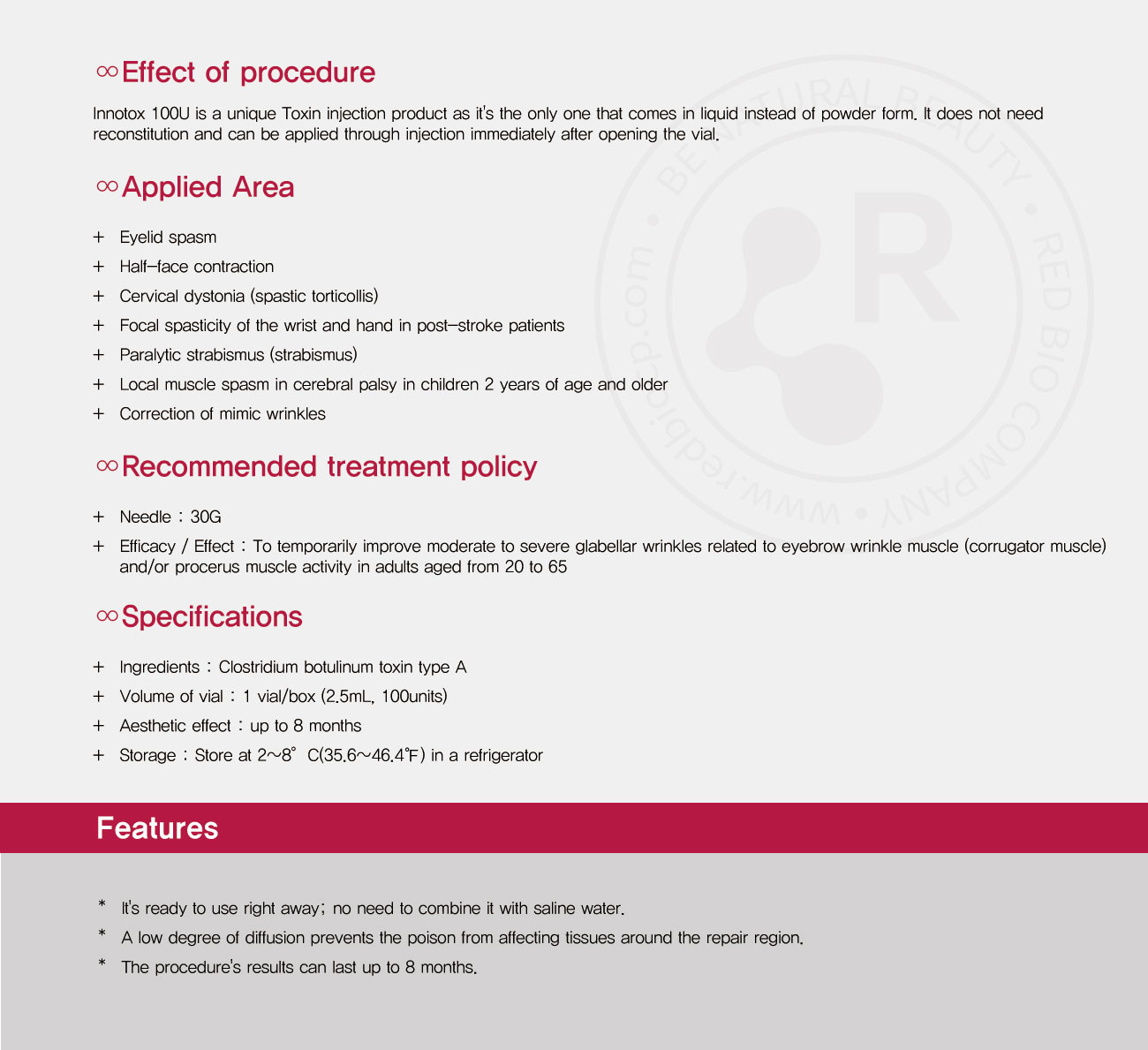 Innotox is a South Korean breakthrough product for beauty care, which smoothing facial wrinkles. Improved formula and vertical form It is popular in many nations since it is simple to apply and produces a long-lasting result. Clostridium Botulinum Toxin Type A is a toxin produced by Clostridium Botulinum (Hall strain)