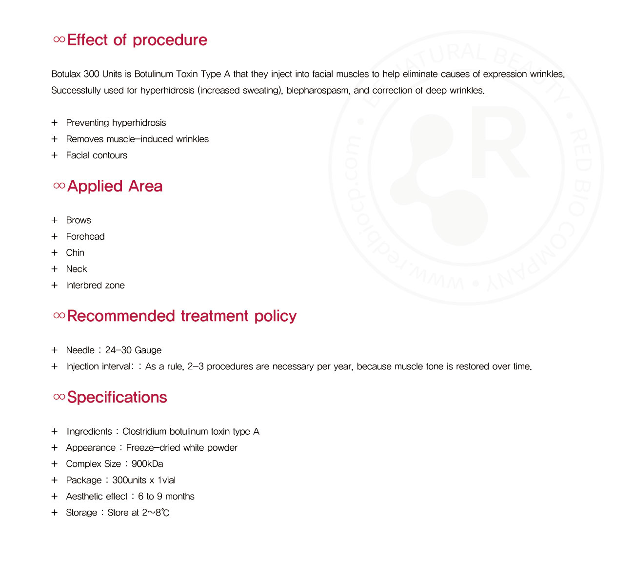 Usage Area : Forehead lines, Glabellar lines, Crow's feet, Bunny lines, Marionette lines