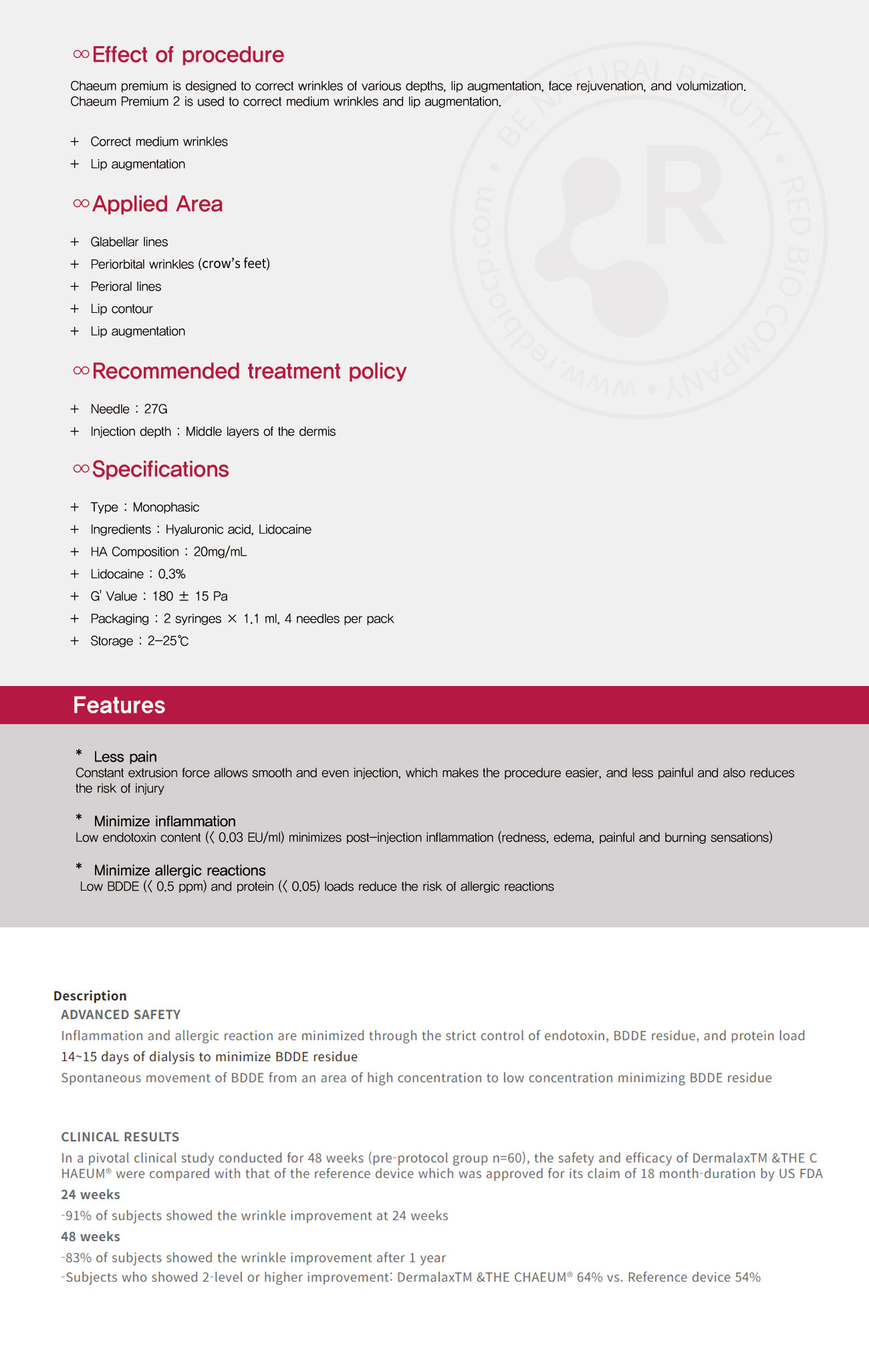 Chaeum premium is designed to correct wrinkles of various depths, lip augmentation, face rejuvenation, and volumization.